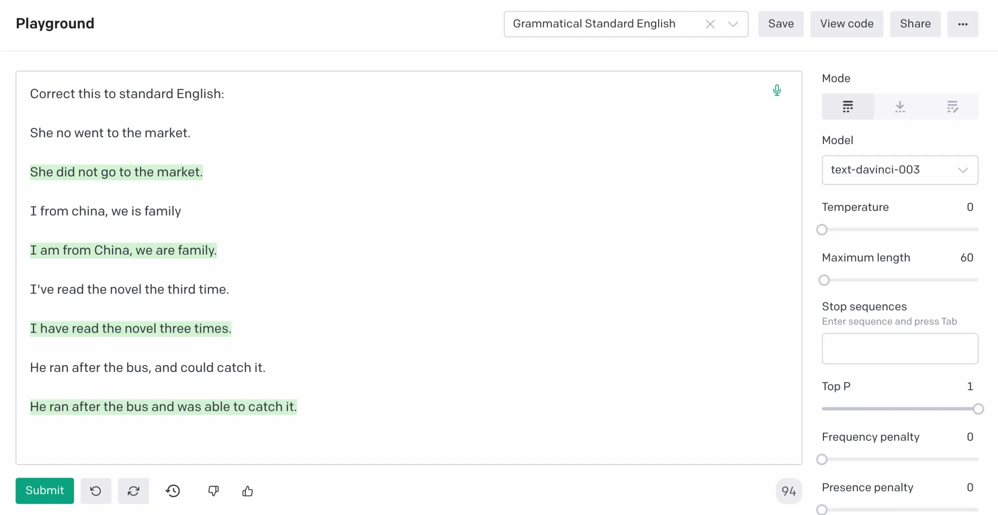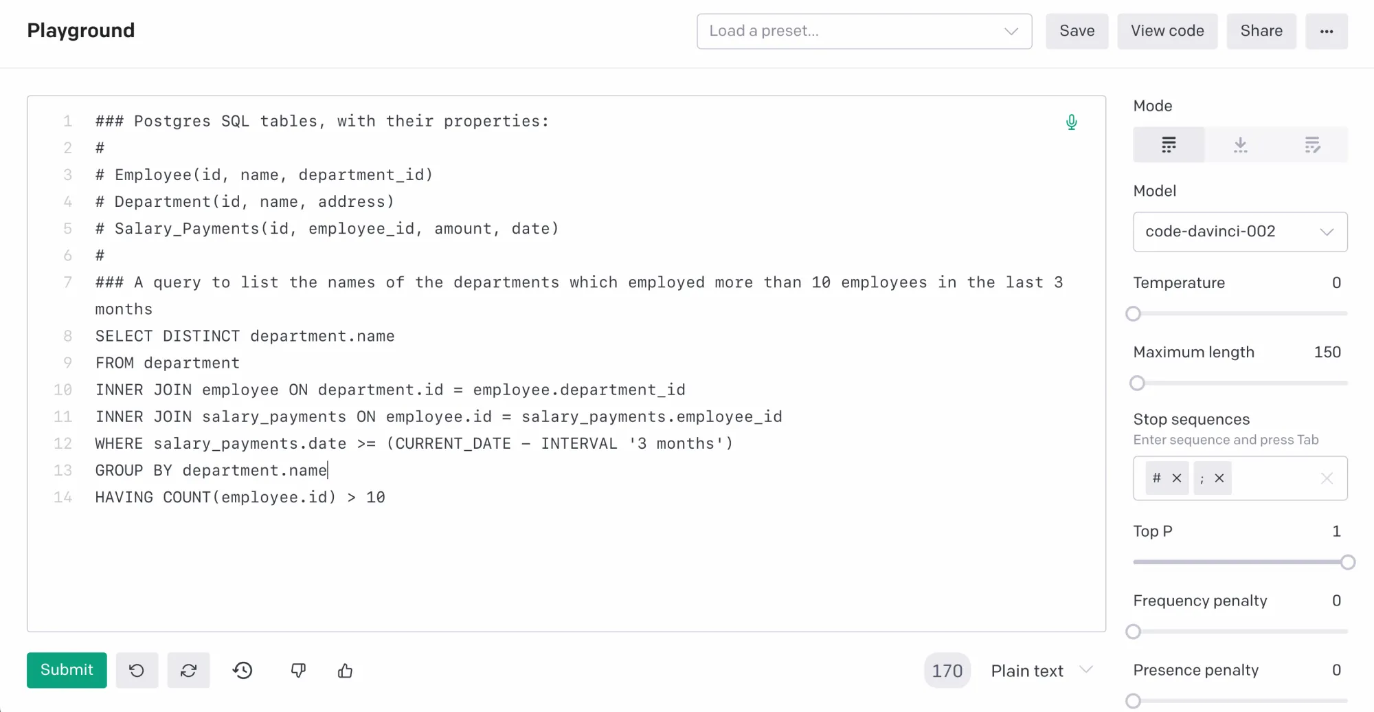 除去写文章外,其实有一些很日常的问题他也能够回答得不错,比如说 Q&A、解释代码的意思、帮你修正错误的英语语法、甚至通过看你的语句帮你生成 SQL 语句,这里让我觉得神奇的是,他的问答有一点点人文的感觉在了。