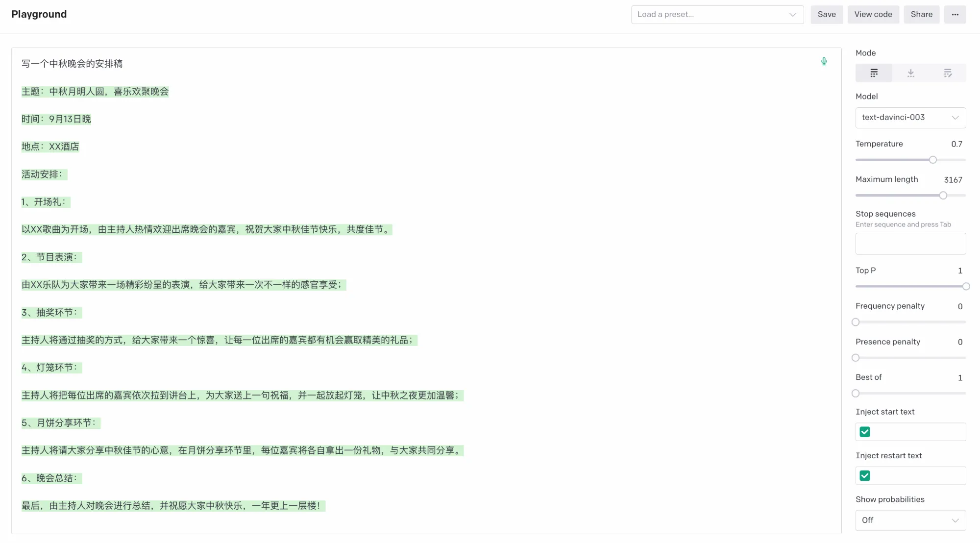 OpenAI 除外简单的编程实现,还发现了一个写文章的能力,编剧也没问题,也很适合写所谓的「论证文」,不过还是感觉还是有些「正规话术」,但是在某些场合其实还是很吃香的,比如说如下这种类似于活动安排、论证主题、模版申请啥的还是合适的,居然还可以「教你做菜」简直了。