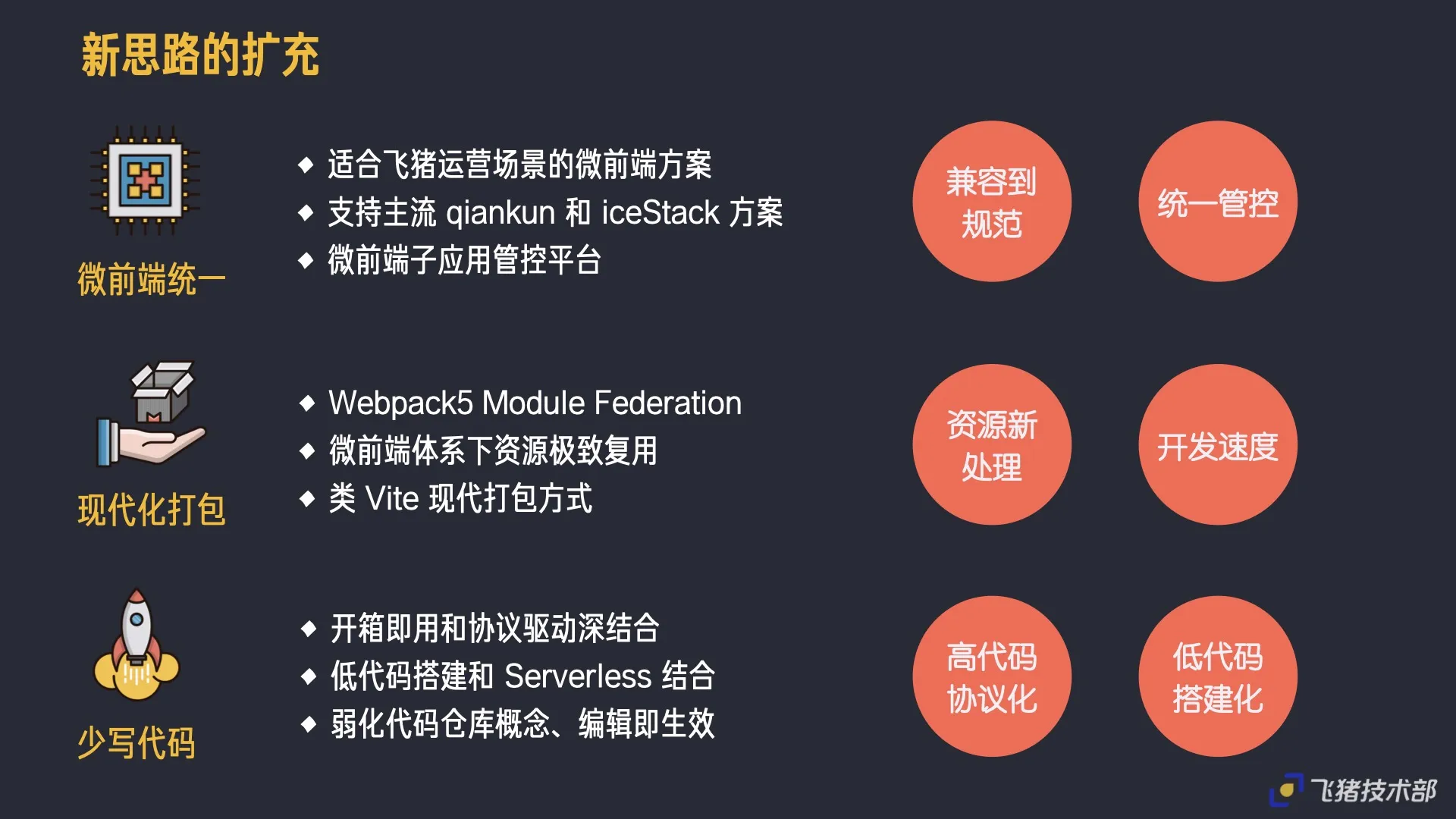For the technical side, we will try more new technology exploration, especially in micro front-end specification unification, how to let existing systems access current mainstream micro front-end sub-application capabilities, including upper-layer sub-application management platform; meanwhile, the current new packaging system may give us many new ideas to expand existing packaging capabilities; and how the above out-of-the-box protocol-driven building can improve our rapid generation capabilities more through low-code building methods!