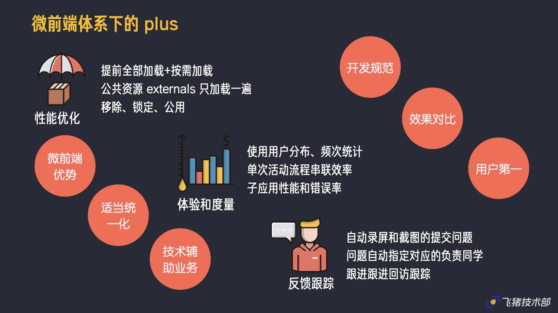 Besides micro front-end and routing on the front-end side, actually there are more things that can be done, including integrating public resources such as antd, loadsh, router, etc. unified large versions, processing by writing umi-externals-url, thereby reducing resources by nearly 1/3; including experience measurement, we leverage internal capabilities to perform stratified analysis of users including error performance monitoring; at the same time, produce an online feedback system capable of screen recording and screenshots, facilitating direct feedback notification and direct issue submission to corresponding responsible students during use;