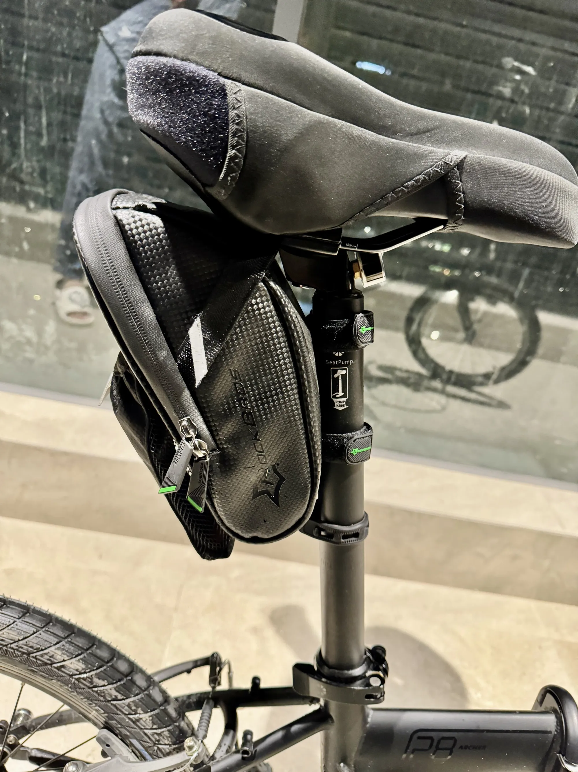 💼 Regarding bicycle accessories, I first recommend the “Rockbros Bicycle Tail Bag” in the second picture. It’s so, so practical and fits the Dahon perfectly. I bought two other bicycle bags before, but I returned them after struggling. This bag is super convenient for carrying water, phone, headphones, etc., when going out. And it only costs 55. Moreover, for perfectionists, it’s very comfortable because it’s out of sight when placed at the back. I once bought a water bottle cage and installed it on the handlebar, but due to low frequency of use and affecting the aesthetics, I removed it after 2 days. So if you don’t often go on long rides and need to drink water on the road, I don’t recommend installing it.